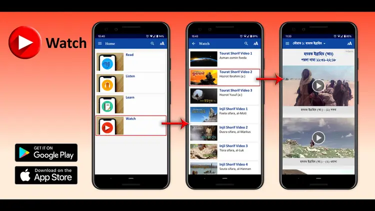 'সিলেটি ভাষায় আসমানী কিতাব' অউ app থাকি, Android device বা iOS device দিয়া আপনাইন্তর মাজে যেচা কেউ বাক্কা সহজে অলা-অলাউ অখন পড়িতো পারবো, হুনতো পারবো, হিখতো পারবো আর ভিডিও দেখতো পারবো।